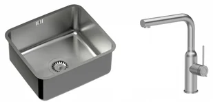 Zestaw zawiera zlewozmywak stalowy NICOLAS STAL SZCZOTKOWANA + bateria kuchenna ANGELINA Q LINE z wyciąganą wylewką + syfon save space z odpływem 3,5"