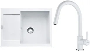 Zestaw granitowy Zlewozmywak Franke Maris MRG 611-62 + Bateria Lina pull-out Biały Polarny