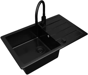 TRWAŁOŚĆKompozyt granitowy, z którego został wykonany zlewozmywak to produkt najwyższej jakości. Dzięki temu zlew jest naprawdę solidny i odporny na wszelkiego rodzaju zarysowania czy inne uszkodzenia. ELASTYCZNA WYLEWKABateria z wylewką, którą możesz swobodnie manewrować ogromnie ułatwia kuchenne zadania. Za jej sprawą wygodnie i z większą precyzją doczyścisz zlewozmywak czy naczynia o nietypowych kształtach. MOC CZERNIZlewozmywak jest wykonany z jednolicie czarnego granitu o nasyconej barwie.