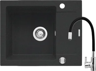 Zlewozmywaki kuchenne jednokomorowe Zestaw Pyramis Zlewozmywak granitowy Mido 62x50 1B1D Czarny + Bateria Flessi | Darmowa dostawa od 99 zł | Raty 0% 5903726472869