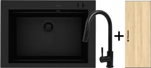 Zestaw Pyramis Zlewozmywak Siros 67x51,5 1B Black edition + Bateria Idea Zestaw Pyramis Siros to elegancka i funkcjonalna propozycja dla każdego, kto ceni styl i jakość. Zlewozmywak wykonany z granitu w kolorze czarnym matowym o wymiarach 67x51,5cm z jedną komorą. Bateria jednodźwigniowa z wyciąganą wylewką. NAJWAŻNIEJSZE PARAMETRY ZLEWOZMYWAKA Typ: Zlewozmywak jednokomorowy Kolor: