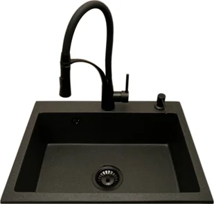 Zlewozmywak PREHNIT Zlewozmywak jednokomorowy ELAN grafit + bateria czarna NEXO + dozownik czarny