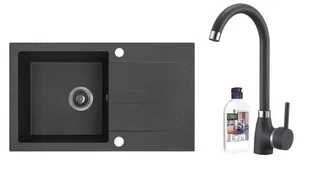 Zlewozmywak Zlew Granitowy Bateria Syfon Preparat ✅Otrzymasz wysokiej jakości zlewozmywak granitowy z dedykowaną kolorystycznie baterią granitową i syfonem oraz preparatem do czyszczenia. ✅Dzięki wygodnej, jednouchwytowej baterii szybko dostosujesz temperaturę i natężenie strumienia wody do własnych potrzeb. ✅Zlewozmywak jest ergonomiczny i odwracalny. Posiada wygodny manualny korek oraz wyjście na zmywarkę. ✅Pojemna komora to więcej miejsca dla Ciebie.