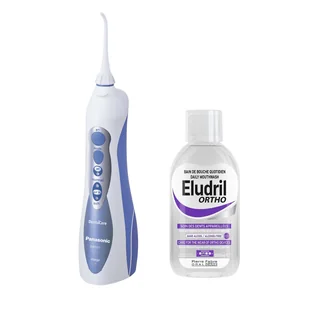 Jeśli nosisz aparat ortodontyczny, to ten zestaw jest dla Ciebie! Irygator Panasonic EW1211 dokładnie czyści obszary między zębami i poniżej linii dziąseł. Po irygacji użyj płynu Eludril Ortho. Dowiedz się więcej.
