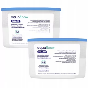 Pochłaniacz wilgoci AquaFloow Refiller 600 ml - bezzapachowy - 2 sztuki Wydajny pochłaniacz wilgoci Aquafloow o pojemności 600 ml do walki z nadmierną wilgotnością w domu. Idealny w pomieszczeniach, takich jak piwnice, łazienki czy kuchnie. Pochłaniacz Aquafloow pomaga także zapobiegać nieprzyjemnym efektom, takim jak rozwój pleśni, stęchlizna czy kondensacja na szybach. Większa pojemność gwarantuje dłuższą i efektywniejszą ochronę przed nadmierną wilgotnością. Specyfikacja produktu: