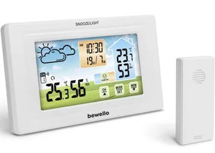 Ta stacja pogodowa z funkcją budzika jest idealnym wyborem do pomiarów temperatury i wilgotności wewnątrz i na zewnątrz pomieszczeń. Dostępna jest w kolorze białym, który nadaje każdemu otoczeniu nowoczesny i elegancki wygląd. Urządzenie posiada duży wyświetlacz cyfrowy, na którym łatwo odczytać zmierzone wartości. Wrażliwa na dotyk powierzchnia ułatwia przełączanie między odczytami i ustawieniami. Czas alarmu można ustawić na urządzeniu, możliwa jest również funkcja drzemki.