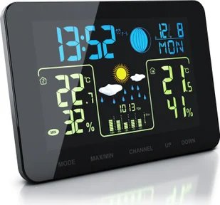225 g Zakres dostawy: Stacja pogodowa + czujnik zewnętrzny + zasilacz i instrukcja obsługi Dane techniczne wtyczka cylindryczna 3,5 mm Zasilacz 5 V 1 A2 baterie AAA do stacji zewnętrznej (nie wchodzą w zakres dostawy)Zakres pomiaru temperatury wewnętrznej: 0 - 50°C / temperatury zewnętrznej: -50°C - 70°CRozdzielczość: 0,1°CWilgotność (wewnątrz i na zewnątrz):