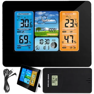 Bezprzewodowa Stacja Pogodowa Termometr Wilgotność Barometr Alarm Czarna