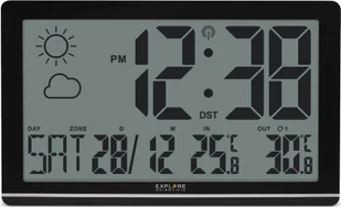 Zegar ścienny EXPLORE SCIENTIFIC Jumbo LCDjest idealny do biur lub innych dużych pomieszczeń dzięki swoim rozmiarom i kontrastowemu ekranowi LCD. Czas jest ustawiany automatycznie za pomocą sygnału czasu DCF, podobnie jak zmiana na czas letni lub zimowy. Oprócz temperatury wewnętrznej i zewnętrznej oraz wilgotności, zegar ścienny podaje również prognozę pogody na najbliższe 6 do 12 godzin. Zegar ścienny może przetwarzać dane z maksymalnie 3 czujników zewnętrznych (1 w zestawie). Jeśli temperatura spadnie z 3 °C do -2 °C, wyświetlane jest ostrzeżenie o mrozie.