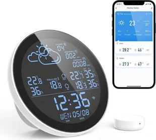 Dzięki zasięgowi do 80 metrów czujnik można umieścić w miejscach, w których konwencjonalne czujniki zawiodłyby. Zasilanie i łączność: Czujnik jest zasilany bateryjnie i wyposażony w technologię 433 MHz zapewniającą stabilną i niezawodną komunikację z główną stacją pogodową. Kompatybilność z aplikacją Smart Life/TUYA Smart: Wszystkie dane można przeglądać w przejrzysty sposób na smartfonie lub tablecie, zapewniając maksymalną wygodę monitorowania pogody.