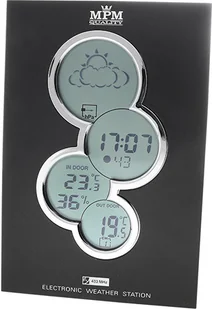 Designerska stacja pogodowa od MPM pasuje do każdego domu. Czytelne wyświetlacze informują o aktualnej temperaturze (wewnętrznej i zewnętrznej), wilgotności i ciśnieniu powietrza. Oczywiście jest też cyfrowy wyświetlacz czasu. Funkcje: Kalendarz (do 2069 r.)Prognoza pogody12 / 24-godzinny format wyświetlania czasuPamięć maksymalnej / minimalnej temperaturyWyświetlanie fazy księżyca, wyświetlanie pływówWyświetlanie dni tygodnia - wybór 8 języków (CZ, EN, RU, DA, NE, IT, ES, FR)Stacja pogodowa jest zasilana czterema bateriami AA (brak w zestawie). MPM Quality to czeska marka produkowana poza UE.