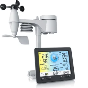 Cechy produktu Profesjonalny pomiar pogody dzięki bezprzewodowej stacji pogodowej Brandsonz czujnikiem zewnętrznym 5 w 1. Pomiar: Temperatury, wilgotności, prędkości wiatru, kierunku wiatru i opadów deszczu. Stopień ochrony IPX4Zasięg czujnika zewnętrznego do 150 m (przy dobrej widoczności)DST (może być włączany i wyłączany)Prognoza pogody na następne 12 godzin z piktogramemTryb pamięci z danymi z ostatnich 24 godzin i ostrzeżeniem (alarmem) pogodowym dla: Ciśnienia powietrza, temperatury i wilgotności wewnątrz i na zewnątrz, prędkości wiatru, ilości deszczu i wiele więcejAlarm mrozuDane pogodowe można odczytywać w czasie rzeczywistym z dowolnego miejsca za pośrednictwem aplikacji (Wunderground) lub strony internetowej (Weathercloud)Duży wyświetlacz LCD (7,9 cala) z 2 poziomami jasnościPunkt rosytemperatura odczuwalna i indeks ciepłaFazy księżycaFunkcja alarmu, drzemka, kalendarzDni tygodnia w 7 językach: EN, DE, FR, ES, IT, NL, RUformat 12/24-godzinnyWyświetlanie w °C lub °FWymiary stacji pogodowej (szerokość x wysokość x głębokość):
