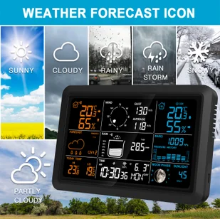 Odbiornik stacji pogodowej z dużym, kolorowym wyświetlaczem VA pokazuje kompleksowe informacje, które można łatwo odczytać w dowolnym momencie. Łatwy w instalacji: Zasilany energią słoneczną czujnik zewnętrzny z regulowaną podstawą montażową, obsługuje montaż na płaskiej powierzchni, na szczycie słupa, z boku słupa i na ścianach. Nadaje się do różnych instalacji. Specyfikacja: