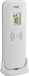 3030 | 30. 3071, z wyświetlaczem, kolor biały EAN: 4009816037091 Kompaktowy przetwornik temperatury do termometru radiowego TFA BUDDY (30.3072.01) i radiowej stacji pogodowej TFA WEATHER JACK (35.1166.54). Idealny do pomiaru temperatury zewnętrznej.