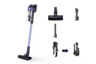 Do 40 minut autonomii Wymienny akumulator o długiej żywotności Dzięki dużej pojemności (2000 mAh) bateria tego odkurzacza może pracować do 40 minut. A jeśli chcesz sprzątać przez 80 kolejnych minut, możesz wymienić baterię na zapasową. Zachowuje on również 70% swojej pierwotnej wydajności przez maksymalnie 500 cykli. Skuteczne czyszczenie, minimalny wysiłek Lekka konstrukcja Sprzątanie domu bez wysiłku dzięki poręcznej, lekkiej konstrukcji, która zmniejsza obciążenie nadgarstka. Korpus miotły waży zaledwie 1,48 kg, czyli o 21% mniej* niż konwencjonalne odkurzacze Samsung.