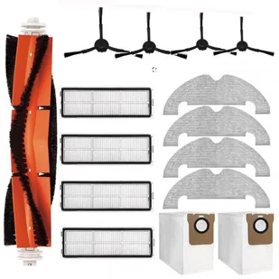 【Zawartość zestawu】1 x szczotka główna, 4 x szczotki boczne, 4 x filtry HEPA, 4 x nakładki mopa, 2 x worki odkurzacza.