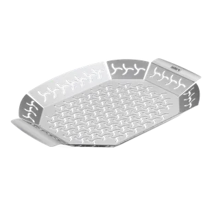 Kosz do grillowania Premium do większości grilli Smaż i grilluj cebulę, paprykę lub inne małe dodatki, kiedy obok przypieka się stek. W koszu do grillowania Premium przyrządzisz mnóstwo warzyw, owoców lub krewetek, nadając im niepowtarzalny dymny aromat grilla. Pasuje do: Wszystkie grille gazowe Weber(R) Q 300/3000 i większe oraz grille węglowe 47 cm i większe Kosze i tace ŻYJ I JEDZ KOLOROWO Wrzuć warzywa do małego kosza do grillowania lub skorzystaj z większego, by przyrządzić delikatne filety rybne bądź szparagi.