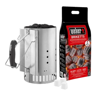 Zestaw do rozpalania Rapidfire komin, brykiet 2kg, 3 rozpałki Zrelaksuj się podczas rozpalania grilla na ten szczególny wieczór. Z zestawem komina do rozpalania Rapidfire masz pod ręką wszystko, czego potrzebujesz, by rozpocząć grillowanie. Napełnij komin do rozpalania brykietami, a wkrótce usłyszysz hipnotyzujące trzaskanie, które stanowi zapowiedź wspaniałego posiłku. Pora zabrać się za grillowanie! Brykiety i akcesoria do węgla drzewnego ROZPAL GRILL Idealny kawałek mięsa zasługuje na przyrządzenie na najlepszym paliwie. Nowe brykiety Weber palą się długo i mocno, są w 100% naturalne bez dodatków chemicznych, więc czujesz jedynie smak potrawy.