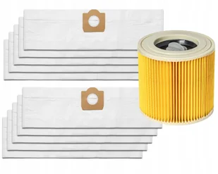 Worki z mikro włókniny syntetycznej + Filtr powietrza przeznaczone do odkurzaczy przemysłowych marki KARCHER Opakowanie zawiera: 10 szt. worków do Karcher 1 ...