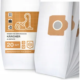 20x Worek do Odkurzacza Kärcher A 2674 Pt Syntetyczny Pojemny Odporny Worki