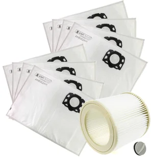 FILTR POWIETRZA I WORKI DO ODKURZACZY KARCHER - 8 sztuk Worki są wykonane z najwyższej jakości pięciowarstwowego mikrowłókna syntetycznego. Posiadają plastikowy uchwyt mocowania. Odporne na rozerwania i wilgoć. Skutecznie redukują emisję kurzu, pyłków i roztoczy. Produkowane w oparciu o najnowsze ekologiczne technologie.