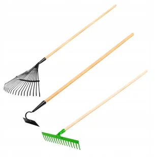 Zestaw narzędzi do ogrodu VERTO Zestaw zawiera: Grabie uniwersalne proste, 16 zębów, głowica nitowana, trzonek drewniany, VERTO 15G050 Motyka 16 cm, trzonek ...