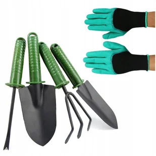 ZESTAW NARZĘDZI OGRODNICZYCH ŁOPATKA GRABIE PAZURKI DO OGRODU + RĘKAWICZKI