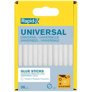 Klej uniwersalny 7-8 mm - 125 g marki Rapid Uniwersalne, przezroczyste sztyfty klejowe o średnicy 7 mm doskonale sprawdzą się w pracach dekoracyjnych i rękodziele oraz do drobnych napraw. W zestawie znajduje się 36 szt. przezroczystych sztyftów.