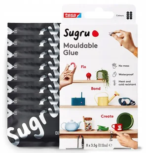 tesa Sugru uniwersalny klej formowalny – wszechstronna silikonowa guma do napraw, klejenia i mocowania bez wiercenia – ośmiopak, 8 x 3,5 g, kolor: czarny