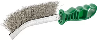 Uniwersalna szczotka ręczna z rękojeścią drut ze stali nierdzewnej falisty 260mm FORMAT Szczotka ręczna, uniwersalna, drut ze stali nierdzewnej, falisty Wykonanie: stabilny, stalowy grzbiet szczotki, ergonomiczna rękojeść z tworzywa sztucznego. Zastosowanie: do wszystkich prac czyszczących i porządkowych, szczególnie do prac w miejscach trudno dostępnych. Dane techniczne Liczba rzędów: