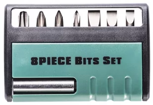 Praktyczne opakowanie umożliwia uporządkowanie i przechowywanie bitów w jednym miejscu. Różnorodny zestaw bitów stanowi podstawowe wyposażenie podczas różnorodnych prac z wkrętami. Długość bitów: 25 mm Ilość elementów: 8 szt. Rodzaj bitów: