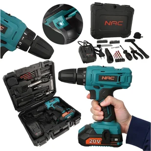 Wiertarko-wkrętarka NAC CDB-1-LI-20V-TS oferuje kompletny zestaw narzędzi gotowych do pracy od pierwszej chwili. W skład zestawu wchodzi akumulator 20V, szybka ładowarka oraz aż 49 wysokiej jakości akcesoriów do wiercenia i wkręcania, starannie uporządkowanych w praktycznej walizce transportowej.