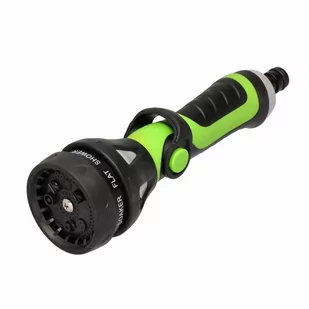 Pistolet metalowy pokryty materiałem ABS i TPR Płynna regulacja ciśnienia strumienia 8 funkcji: mist, soaker, flat, shower, fan, cone, center, jet Pakowanie Jednostkowe Zawieszka Zbiorcze Karton: 24 szt.