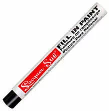 specjalna formuła farby w sztyfcie przeznaczona do rozjaśniania ostemplowanych lub wygrawerowanych napisów pozostaje elastyczna, rozszerza się i kurczy z podłożem odporność na temperaturę: 500 C stosowana do oznaczeń metalu, drewna, plastiku, gumy, ceramiki, szkła nie zawiera rozpuszczalników, trudno zmywalna eliminuje kapanie farby produkowane kolory: biały, żółty, czerwony, czarny, złoty producent: Markal LA-CO (USA) Minimalne zamówienie: 12 sztuk