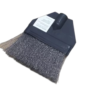 Szczotka do czyszczenia zwrotnic kolejowych. Stabilna oprawa metalowa umożliwia mocowanie kija fi 28 mm. Włosie wykonane są z drutu stalowego.