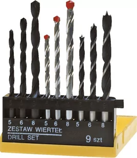 Uniwersalny komplet wierteł do pracy z różnymi materiałami (metal/beton/drewno). W zestawie znaduje się 9 szt.wierteł o średnicach: metal - 5, 6, 8 mm, beton - 5, 6, 8 mm, drewno - 5, 6, 8 mm....