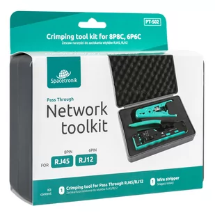 Wysokiej jakości narzędzie - zaciskarka Spacetronik PT-CT02 do wtyczek przelotowych RJ to niezbędne narzędzie każdego instalatora, który ma na co dzień kontakt z sieciami teleinformatycznymi oraz telekomunikacyjnymi. Narzędzie przeznaczone do zaciskania wtyków RJ45 8P8C (zarówno przelotowych, jak i standardowych) oraz standardowych RJ11 (6P4C), RJ12 (6P6C). Dodatkowo w narzędzie wbudowany został zaciskacz ekranów. Specjalny mechanizm dociskowy uniemożliwia niedostateczny docisk złącz. Spacetronik PT-CT02 posiada blokadę, która zapobiega przed niepożądanym otwarcie narzędzia. Elementy robocze wykonane są z metalowego odlewu, uchwyt otoczony osłoną z tworzywa sztucznego zapewnia pewny chwyt narzędzia podczas pracy.