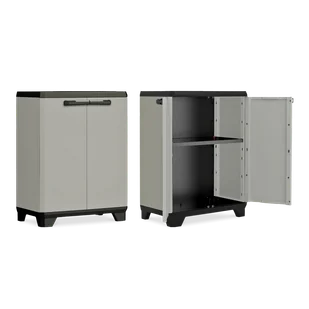 szafkę można bardzo łatwo zmontować. Dla wzmocnienia zalecamy przytwierdzenie mebla do ściany. Szafki marki Keter sprawdzą się idealnie na balkonie, tarasie lub w garażu. Kolor: szaro-czarny Materiał: tworzywo sztuczne z recyklingu Materiał tylnej ściany: