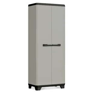tworzywo sztuczne z recyklingu Materiał tylnej ściany: polipropylen Wymiary: 68 x 39 x 173 cm (szer. x gł. x wys.) Wymiary wewnętrzne: 63,5 x 33,5 x 155,7 cm (szer. x gł. x wys.) Ergonomiczne, miękkie uchwyty 3 przestawne półki połówkowe 1 otwarta przegroda wewnątrz Maks. obciążenie każdej półki: