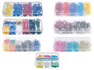 65-częściowy; Zestaw rzepów : 50-częściowy; Zestaw opasek kablowych/ zacisków kablowych : 308-częściowy; Zestaw zacisków krokodylkowych : 80-częściowy; Zestaw tulejek końcówek kablowych : 700-częściowy; Łączniki termokurczliwe :