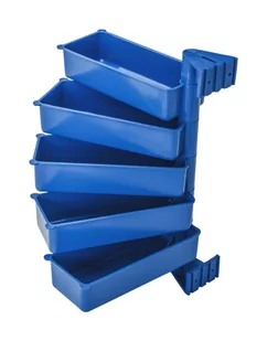 Sprawdzone rozwiązanie dla mniejszych powierzchni magazynowych Oferowane przez nas pojemniki obrotowe wykonane są z polipropylenu i tworzą zestaw 3, 5, 6 pojemników zawieszonych na wspólnej osi. Służą do przechowywania dużej ilości drobnych elementów na bardzo małej przestrzeni. Zestaw można zamontować do ściany za pomocą kołków rozporowych. Pojemniki obrotowe mają doskonałe właściwości fizykochemiczne, dlatego są odporne na: uderzenia i zarysowania działanie środków chemicznych odkształcenia działanie temperatury w przedziale od -10℃ do +90℃ Idealnie sprawdzają się w:
