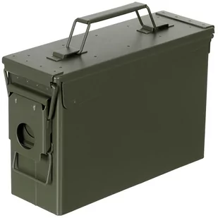 SKRZYNIA AMUNICYJNA M19A1 30mm. Wytrzymała skrzynia transportowa domyślnie stworzona do transportu amunicji. Całość zrobiona z wytrzymałego metalu. Wieko wyposażone w uszczelkę dla zachowania hermetyczności pojemnika. Składana rączka transportowa.