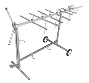 Materiał: stal malowana proszkowo, Waga: 22kg, Długość: 205cm CECHY: mobilny, posiada 2 koła odporne na środki chemiczne używane w zakładach lakierniczych; system obrotowy sterowany pedałem umożliwia obracanie elementów o 360 stopni i ustawianie ich w różnych pozycjach; stabilna konstrukcja; 6 sztuk ramion z potrójnym systemem zamocowań; stalowy, malowany proszkowo; uchwyt na pistolet lakierniczy
