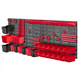 Tablica warsztatowa 58x39 cm 2 szt. 14 pojemników 8x12 cm20 wieszaków w różnych rozmiarach4 duże kubki warsztatowe6 małych kubków warsztatowych2 półki narzędziowe