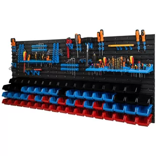 Wielu naszych klientów wraca i chwali się zdjęciami swoich zakątków majsterkowicza. Tablica garażowa to świetny prezent dla każdego mężczyzny, na pewno każdy będzie zadowolony. W zestawie otrzymują Państwo: Tablica ścienna o łącznej powierzchni 172 x 78 cm Kuwety: Łącznie: 66 sztuk 22 sztuk kuwet o wymiarach 100 x 155 x 70 mm , Kolor Czerwony 22 sztuk kuwet o wymiarach 100 x 155 x 70 mm , Kolor Niebieski 22 sztuk kuwet o wymiarach 100 x 155 x 70 mm , Kolor Czarny Uchwyty:
