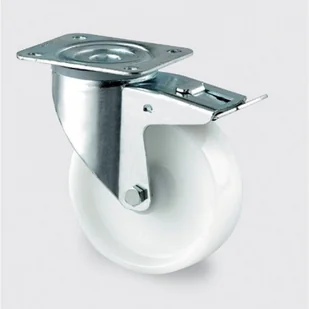 koło: poliamid mocowanie przez kołnierz płaski łożysko wałeczkowe bez ochrony przeciwko wplątywaniu się włókien odporność na temperatury -40°C do +80°C