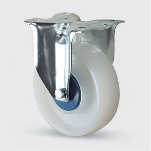 specjalna konstrukcja koła zapewnia cichą pracę koła felga koła: poliamid bieżnik: poliamid mocowanie przez płaski kołnierz łożysko wałeczkowe bez ochrony przeciwko wplątywaniu się włókien odporność na temperatury -40°C do +80°C