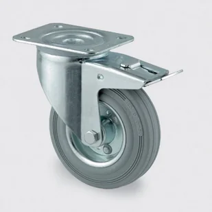 tarcza koła: stalowa ocynkowana blachabieżnik: szara guma, nie pozostawia śladówmocowanie przez płaski kołnierzłożysko: wałeczkowebez ochrony przeciwko wplątywaniu się włókienodporność na temperatury -20°C do 60°C