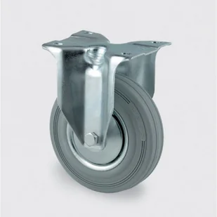 tarcza koła: stalowa ocynkowana blacha bieżnik: szara guma, nie pozostawia śladów mocowanie przez płaski kołnierz łożysko: wałeczkowe z ochroną przeciwko wplątywaniu się włókien odporność na temperatury -20°C do 60°C