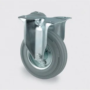 tarcza koła: stalowa ocynkowana blacha bieżnik: szara guma, nie pozostawia śladów mocowanie przez płaski kołnierz łożysko: wałeczkowe bez ochrony przeciwko wplątywaniu się włókien odporność na temperatury -20°C do 60°C